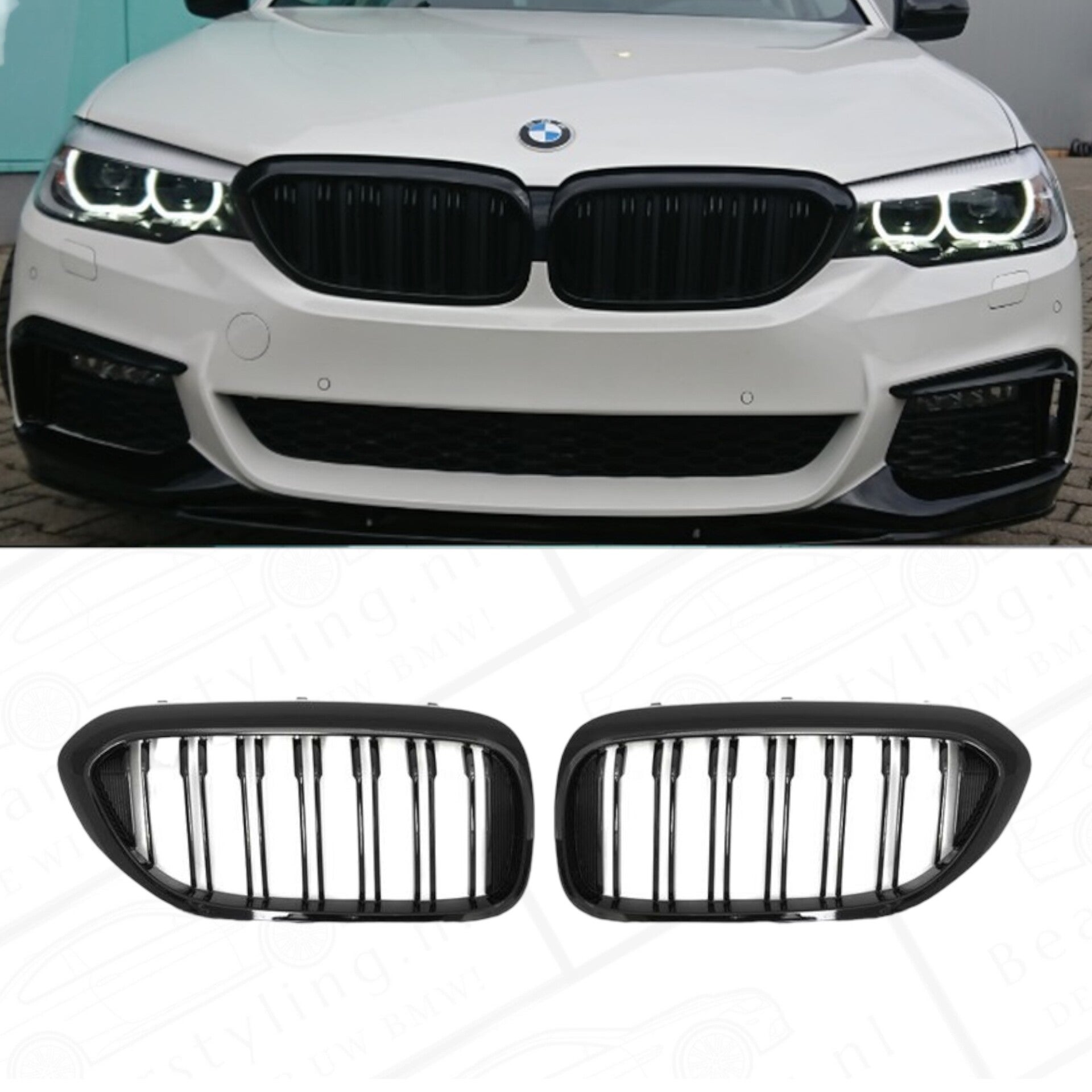 Nieren - BMW G30 / G31 - Hoogglans zwart - Dubbelspijls | 17-20
