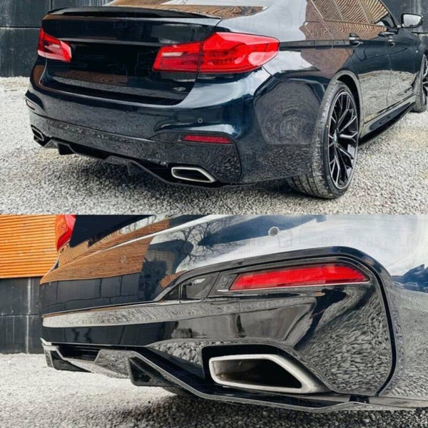 Een glanzend zwarte diffuser uitgevoerd in de M Performance look. De diffuser is passend voor de BMW 5 Serie G30 Sedan & G31 Touring uit alle bouwjaren. De diffuser is getest op kwaliteit & pasvorm. Uitlaat uitsparing links & rechts.