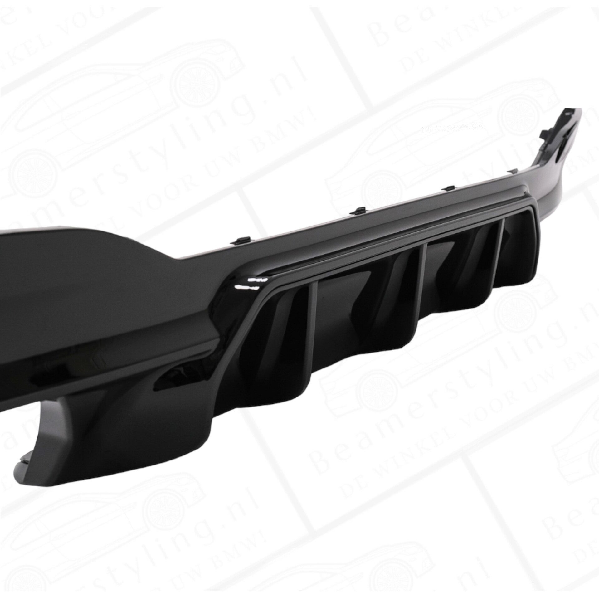 Een glanzend zwarte diffuser uitgevoerd in de M5 look inclusief hoogglans zwarte uitlaat sierstukken. De diffuser + sierstukken zijn passend voor de BMW 5 Serie G30 Sedan & G31 Touring uit alle bouwjaren). De diffuser is getest op kwaliteit & pasvorm.