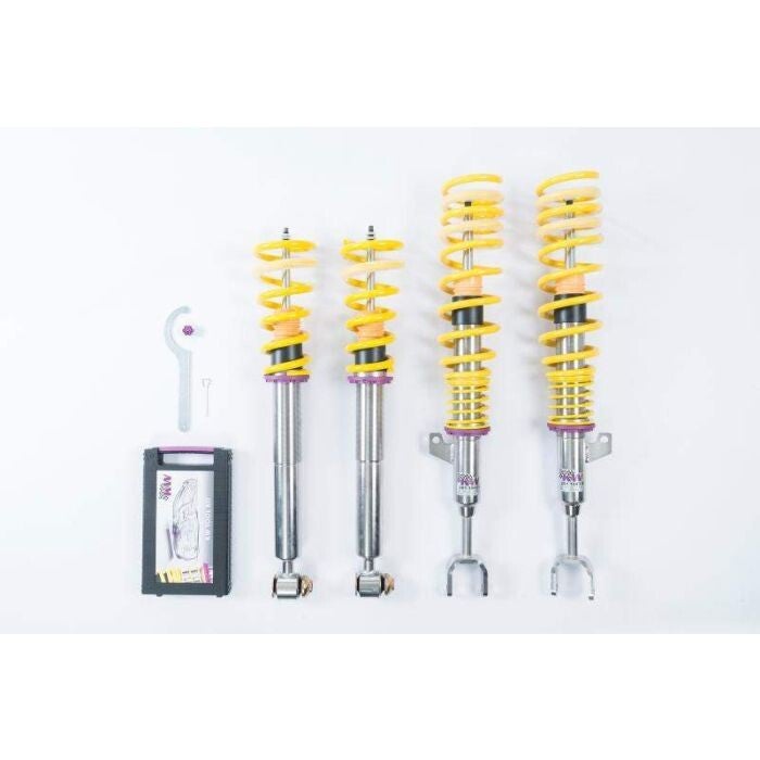 De kortere KW demper behuizingen zorgen voor een comfortabele setup ondanks de verlaging. Daarnaast zijn de KW Street Comfort schroefsets aan te passen op de uitgaande demping aan uw rijstijl. Met 16 nauwkeurig klikken, kunt u de KW dempers, een meer comfortabel of een beetje steviger aanpassen.