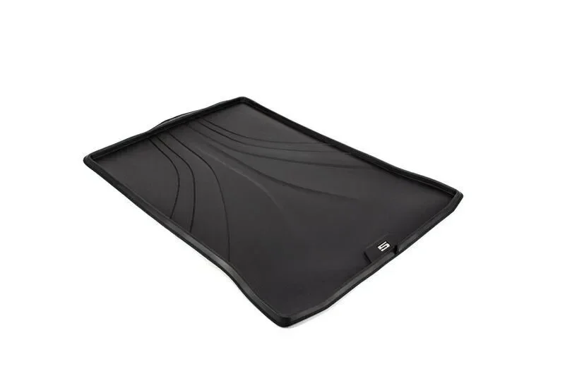 De All-weather kofferbak mat combineert betrouwbare functionaliteit met sportieve elegantie. Het waterdichte materiaal TPE (thermoplastisch elastomeer), de speciale vorm en de opstaande rand van de mat zorgen voor een verstandige waterhuishouding en voorkomen zo vervuiling van het voertuiginterieur. De All Weather vloermatten worden geleverd in modern zwart met een roestvrijstalen inzetstuk met opdruk (5).