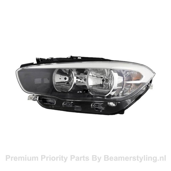 Een HELLA koplamp passend voor de BMW 1 Serie F20 LCI & F21 LCI (Facelift) (2015 - 2019) welke af fabriek zijn uitgevoerd met H7 halogeen koplampen.