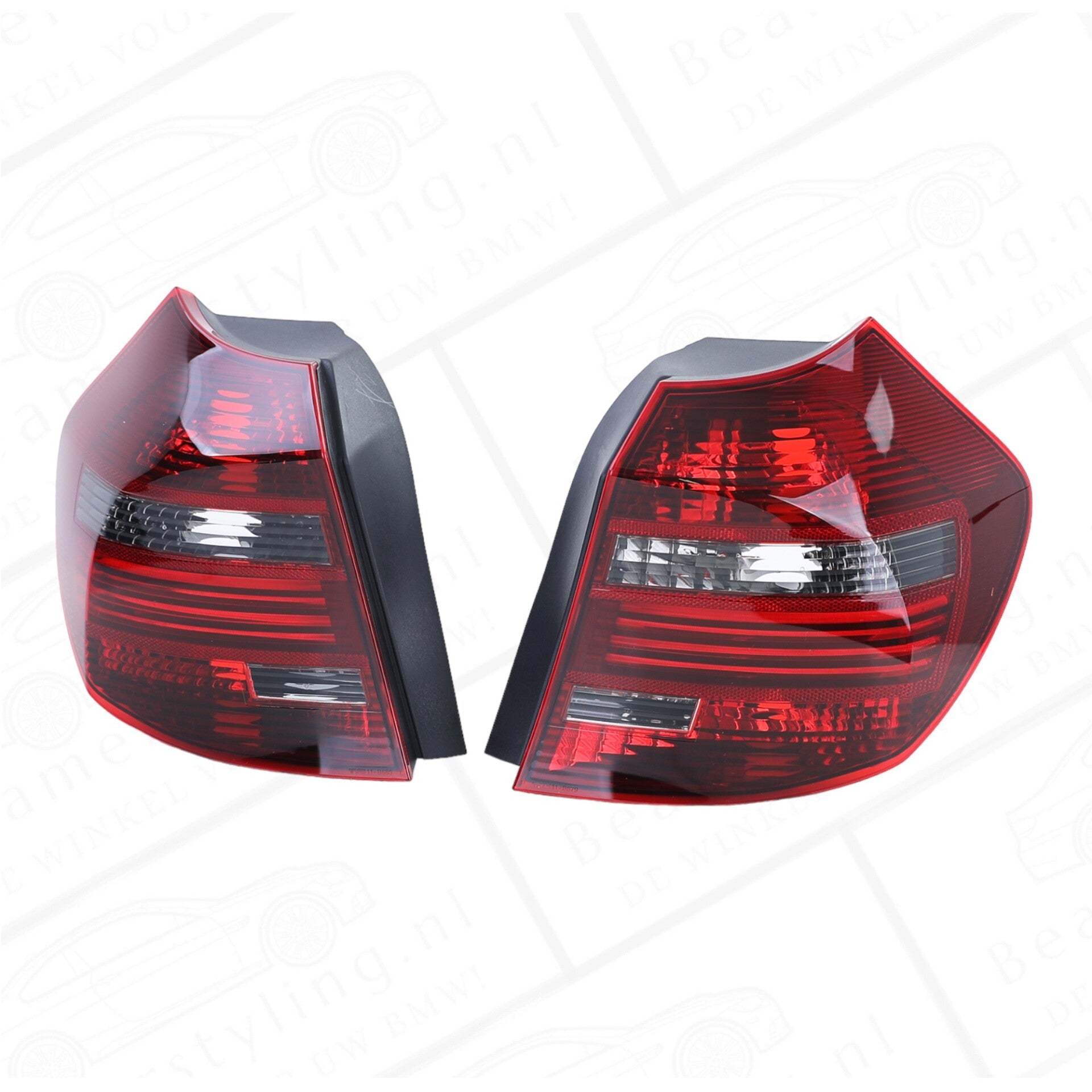 Een set LED achterlichten uitgevoerd in smoke/rood design passend voor de BMW 1 Serie E81 3-deurs & E87 LCI 5-deurs uit de bouwjaren 2007-2012.