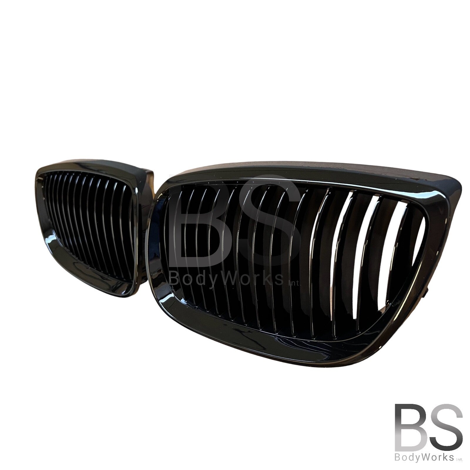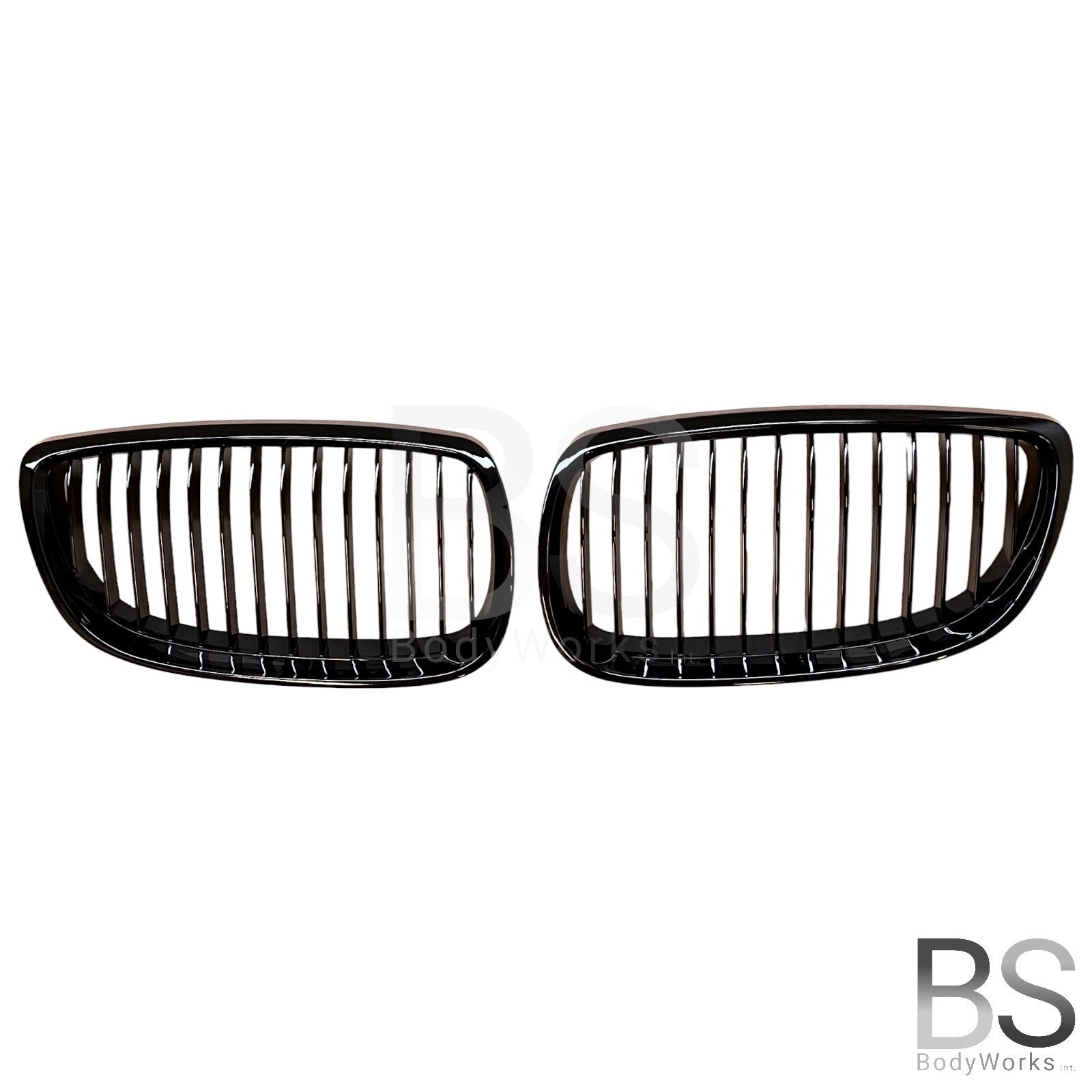 Een set hoogglans zwarte nieren passend voor de BMW 3 Serie E92 / E93 Pre-facelift (10/2006-02/2010). De nieren zijn uitgevoerd met enkele spijlen.