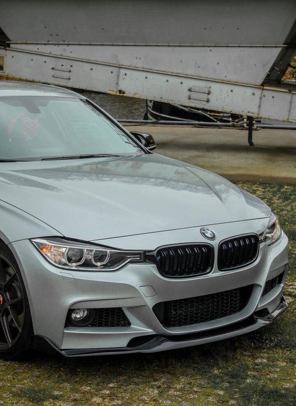 Een front lip uitgevoerd in de MAD Design passend voor de BMW 3 Serie F30 Sedan & F31 Touring welke zijn uitgevoerd met een M pakket voorbumper.