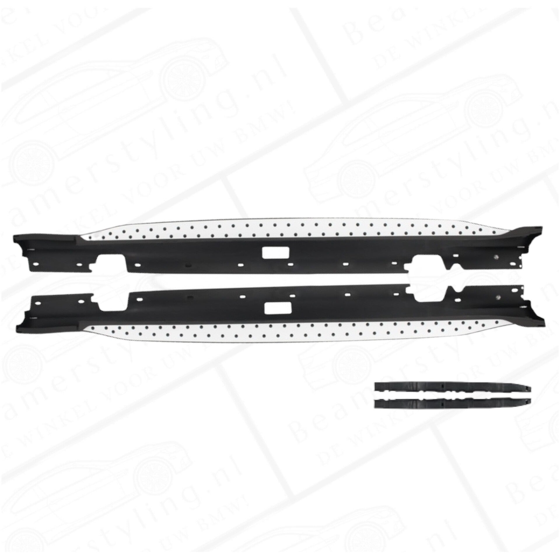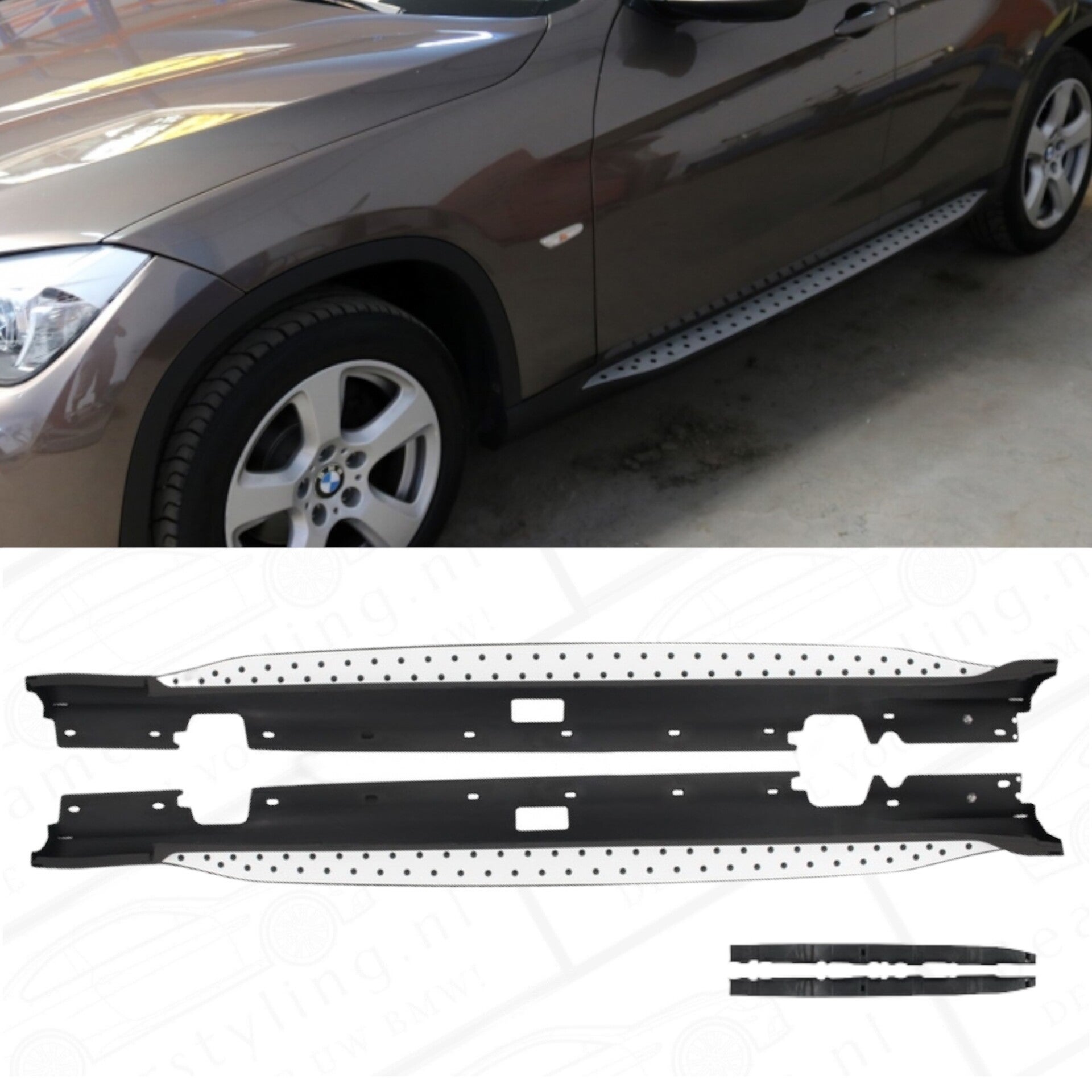 Een complete set treeplanken (running boards) passend voor de BMW X1 E84 uit alle bouwjaren (2009-2015). De treeplanken zijn gemaakt van ABS kunststof, Aluminium, RVS & rubber en zijn uitgevoerd in de OEM look.