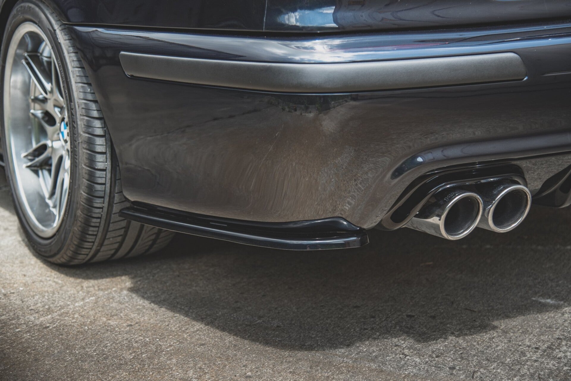 Een set achterbumper splitters van het merk Maxton Design passend voor de BMW 5 Serie E39 Sedan & Touring pre-facelift & facelift modellen (1995-2004). De splitters worden geleverd in hoogglans zwart.