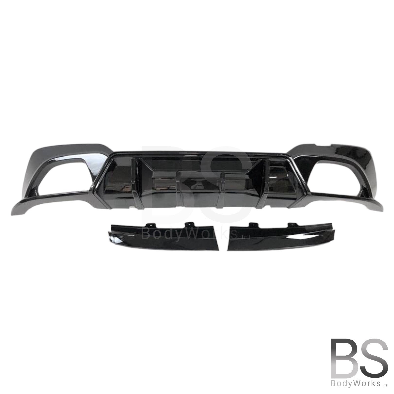 Unieke hoogglans zwarte competition look diffuser passend voor de BMW G20 Sedan en G21 Touring pre-facelift (2019-2022) welke zijn uitgevoerd met een M pakket achterbumper.