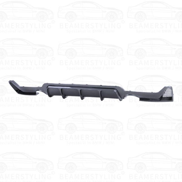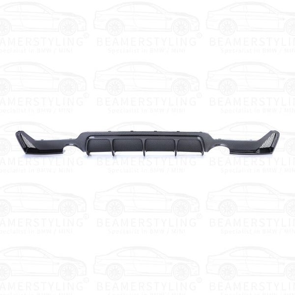 De conversiekit is toepasbaar op de 425d, 430d, 428i & 430i en wordt geleverd met carbon look diffuser uitgevoerd in de M Performance look en chromen uitlaat sierstukken.