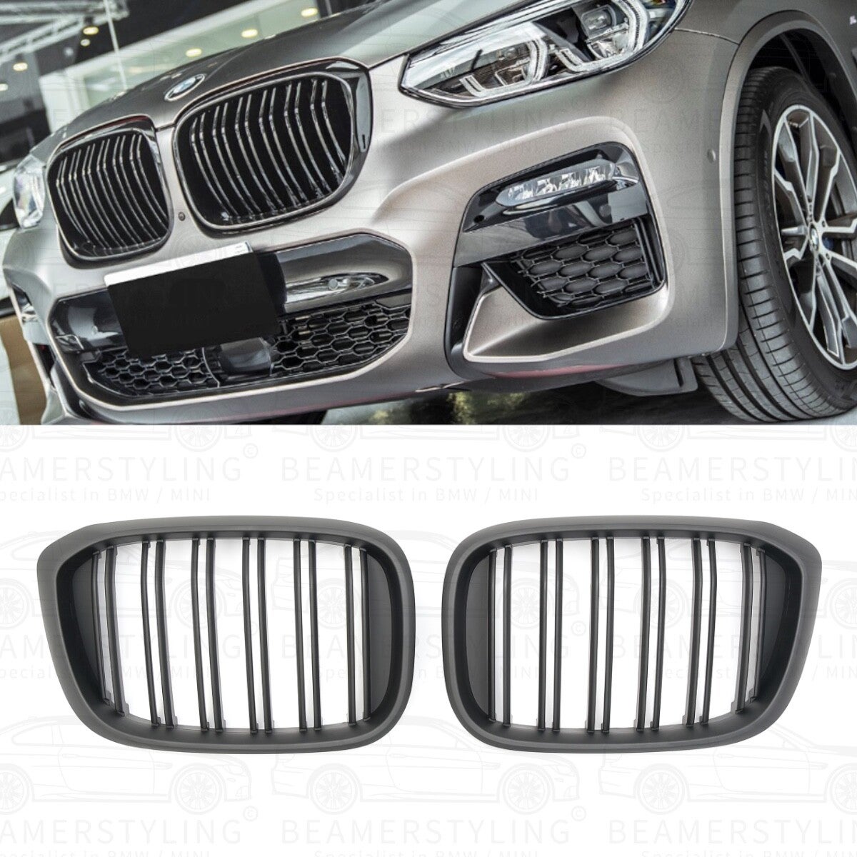 Een set mat zwarte nieren passend voor de BMW X3 G01 & X4 G02 van de bouwjaren 2017 t/m 07/2021 (Pre-facelift). Hoogwaardige mat zwarte afwerking inclusief extra beschermende blanke lak coating tegen verkleuring.