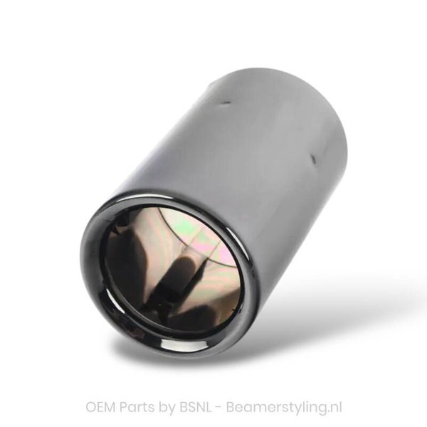 Originele BMW uitlaat sierstukken set uitgevoerd in black/chrome passend voor diverse BMW F-Serie modellen.