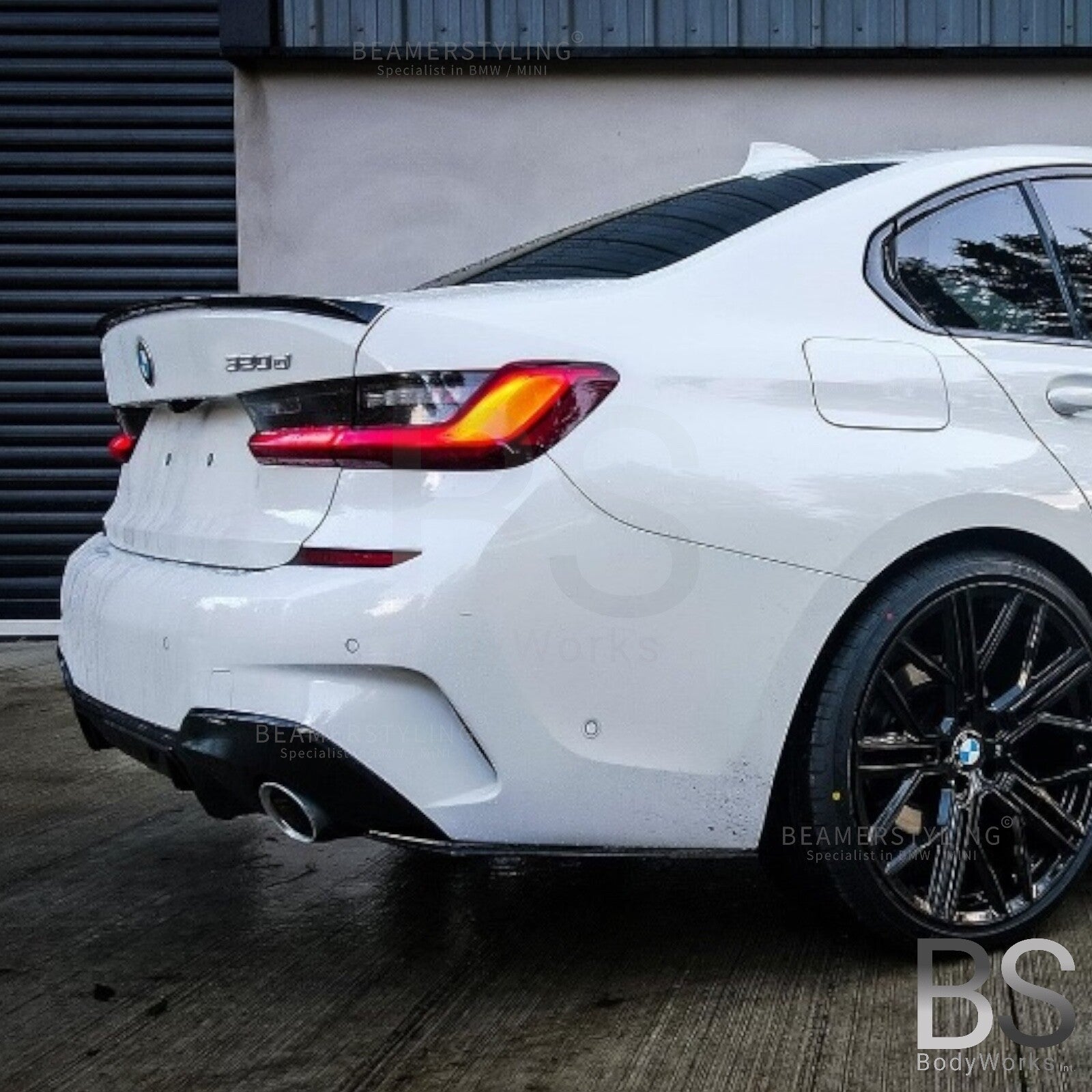 Een set (L+R) achterbumper splitters passend voor de BMW 3 Serie G20 Sedan & G21 Touring modellen, welke zijn uitgevoerd met een M pakket achterbumper (2019 t/m 06/2022).