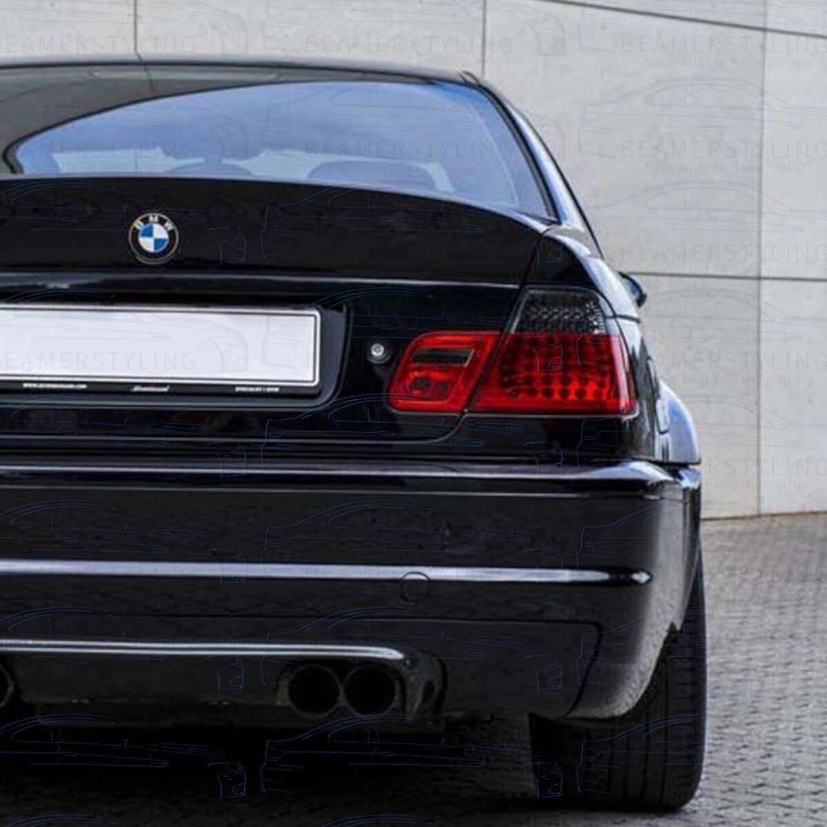 LED achterlichten set uitgevoerd in rood/smoke design passend voor de BMW 3 serie E46 Coupé pre-facelift (1999-2003). De set is 4 delig en beschikt over een E-keurmerk (Europese goedkeuring).