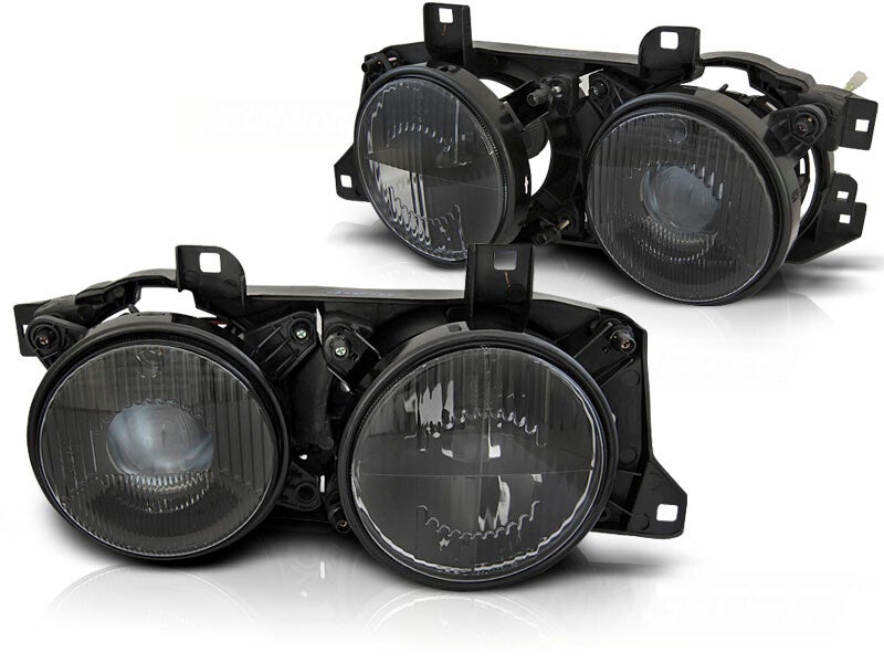 De koplampen zijn geschikt voor de BMW 5 serie E34 en de BMW 7 serie E32.De koplampen hebben een smoke design met kruis.