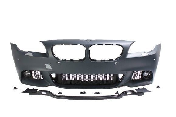 Een M pakket voorbumper sport optiek. De bumper is geschikt voor de BMW 5 serie F10 Sedan / F11 Touring pre-facelift uit de bouwjaren 2010-2013. De voorbumper wordt afgeleverd met parkeersensor voorbereidingen en wordt afgeleverd met uitsparingen voor koplampsproeiers (koplampsproeier afdekkapjes worden meegeleverd). Ook toepasbaar als u niet over koplampsproeiers beschikt.