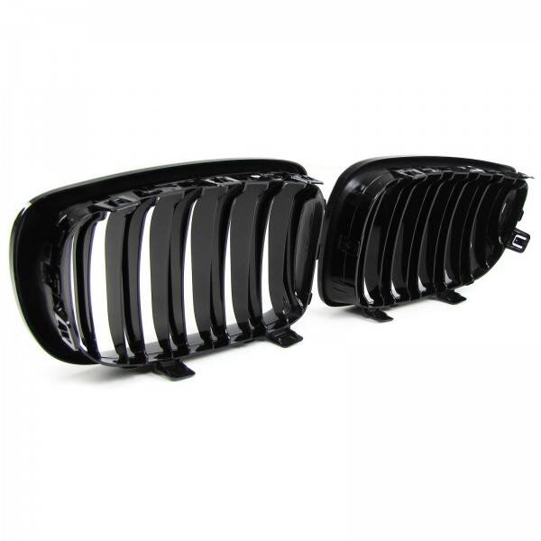 Een setje glanzend zwarte dubbelspijls nieren passend voor de BMW 1 Serie E81 / E87 / E82 / E88 uit de bouwjaren 2007-2012. Zeer mooie hoogglans afwerking. Door de dubbele spijlen vallen de nieren nog meer op.