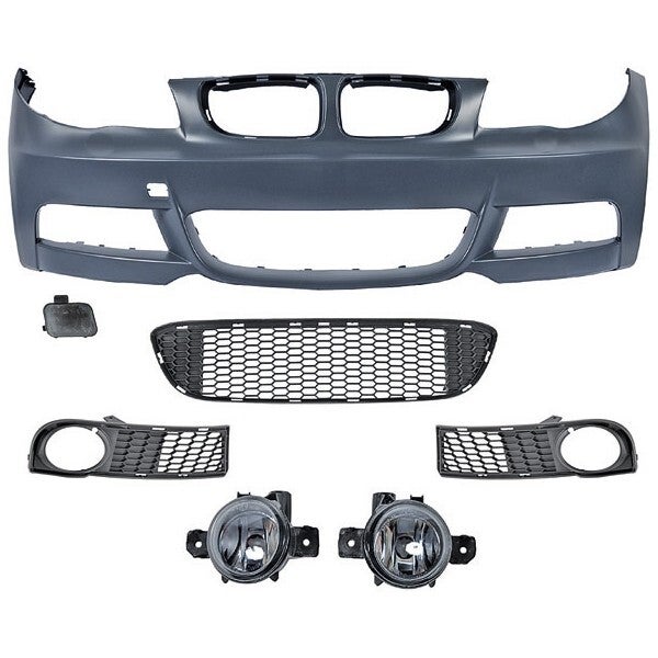 Een M Look voorbumper. geschikt voor de BMW 1 Serie E82 / E88. Inclusief mistlampen. De voorbumper is Zonder parkeersensor voorbereiding en Zonder koplamp sproeiers voorbereding. De bumper heeft een uitstekende pasvorm.