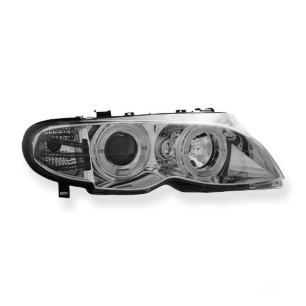 Zeer mooie set koplampen met Led angel eyes en chromen inleg. De koplampen zijn plug & play op uw BMW 3 Serie E46 Sedan / Touring uit de bouwjaren 2001-2005. Geschikt voor modellen af fabriek uitgevoerd met H7 halogeen koplampen. Perfect geschikt als vervangingen of als upgrade van uw BMW.