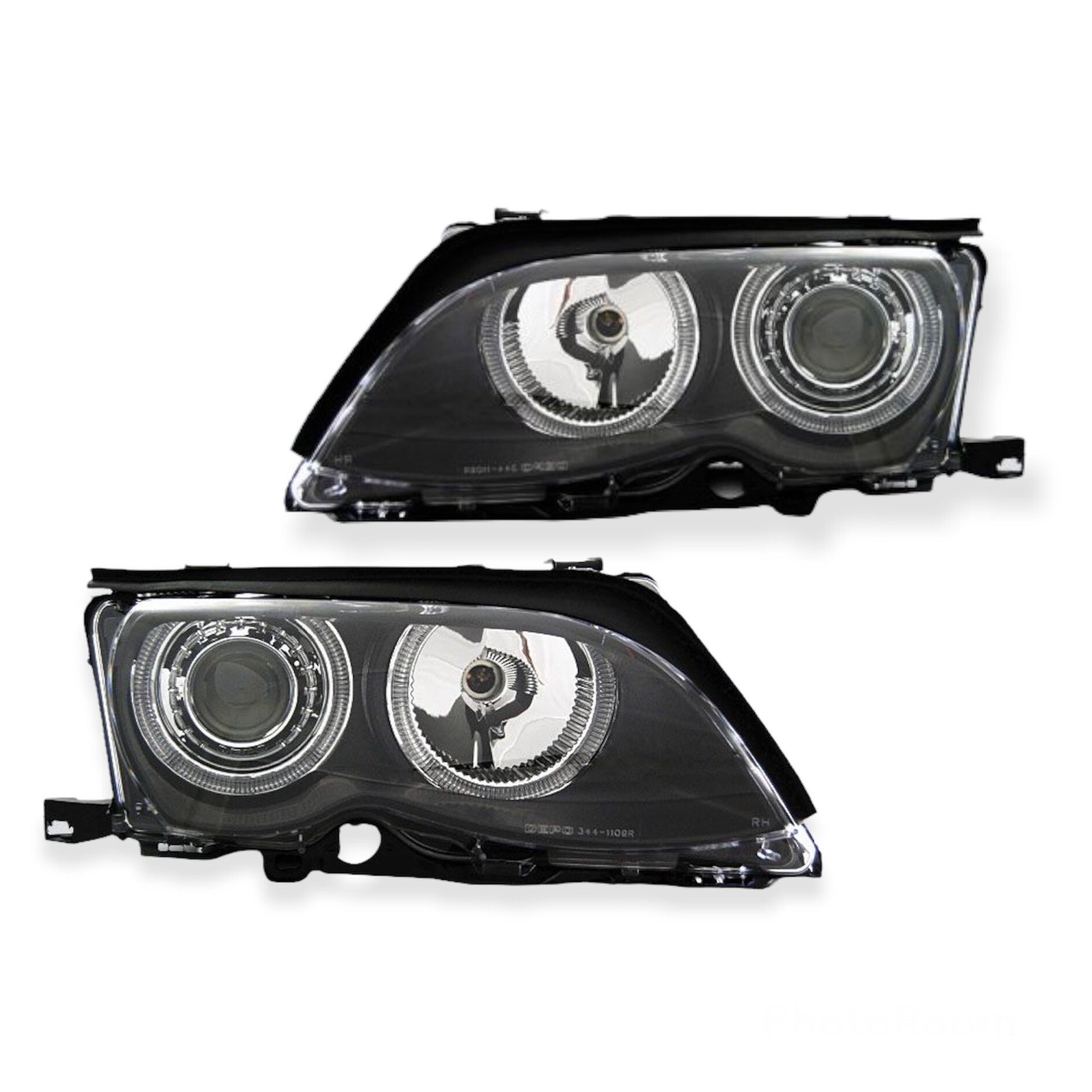 Zeer mooie set koplampen met halogeen angel eyes en zwarte inleg. De koplampen zijn plug & play op uw BMW 3 Serie E46 Sedan / Touring uit de bouwjaren 2001-2005. Geschikt voor modellen af fabriek uitgevoerd met H7 halogeen koplampen. Perfect geschikt als vervangingen of als upgrade van uw BMW.