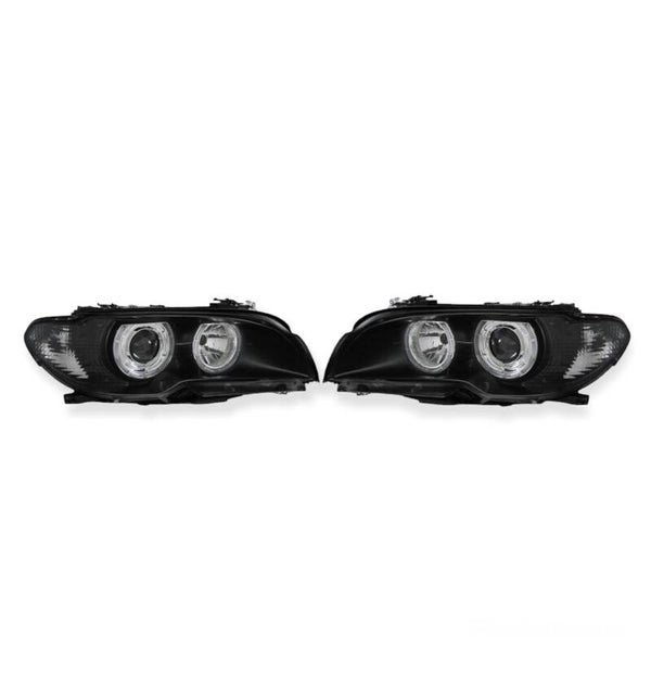 Zeer mooie set koplampen met halogeen angel eyes en zwarte inleg. De koplampen zijn plug & play op uw BMW 3 Serie E46 Coupé / Cabrio uit de bouwjaren 2003-2006. Geschikt voor modellen af fabriek uitgevoerd met H7 halogeen koplampen. Perfect geschikt als vervangingen of als upgrade van uw BMW.