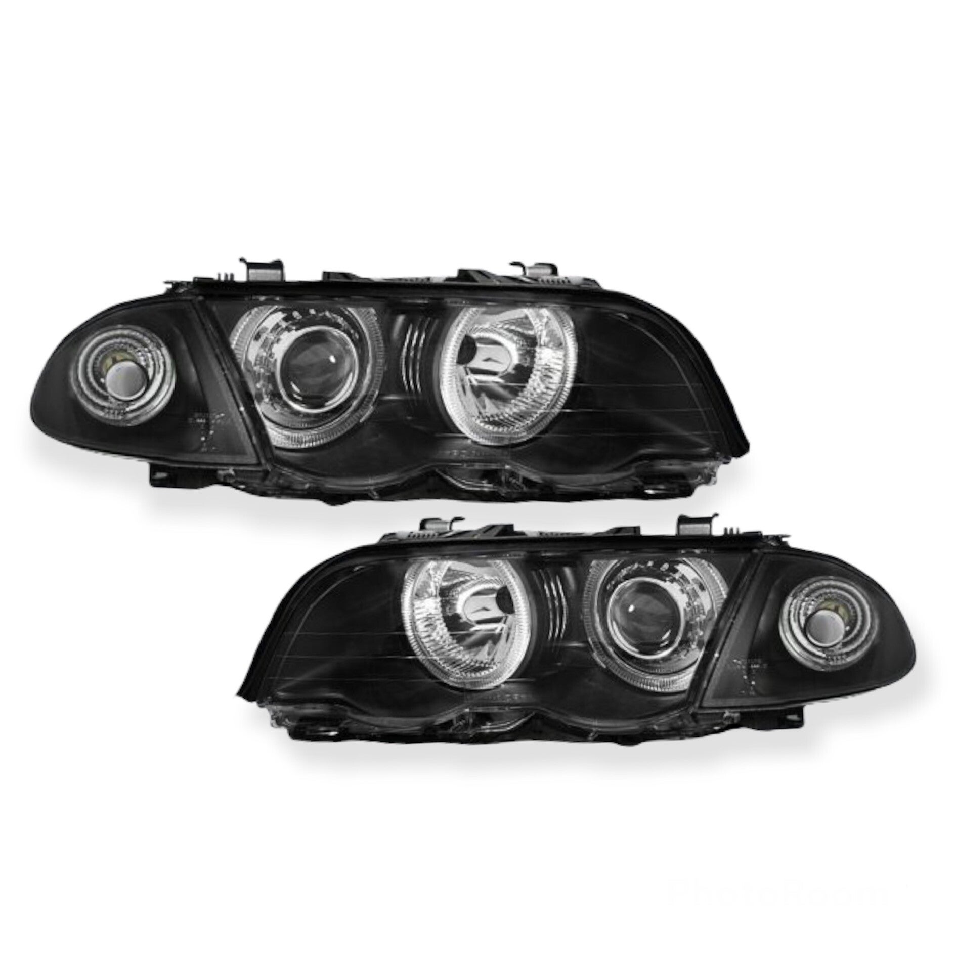 Zeer mooie set koplampen met halogeen angel eyes en zwarte inleg. De koplampen zijn plug & play op uw BMW 3 Serie E46 Sedan / Touring uit de bouwjaren 1998-2001. Geschikt voor modellen af fabriek uitgevoerd met H7 halogeen koplampen. Perfect geschikt als vervanging of als upgrade van uw BMW.