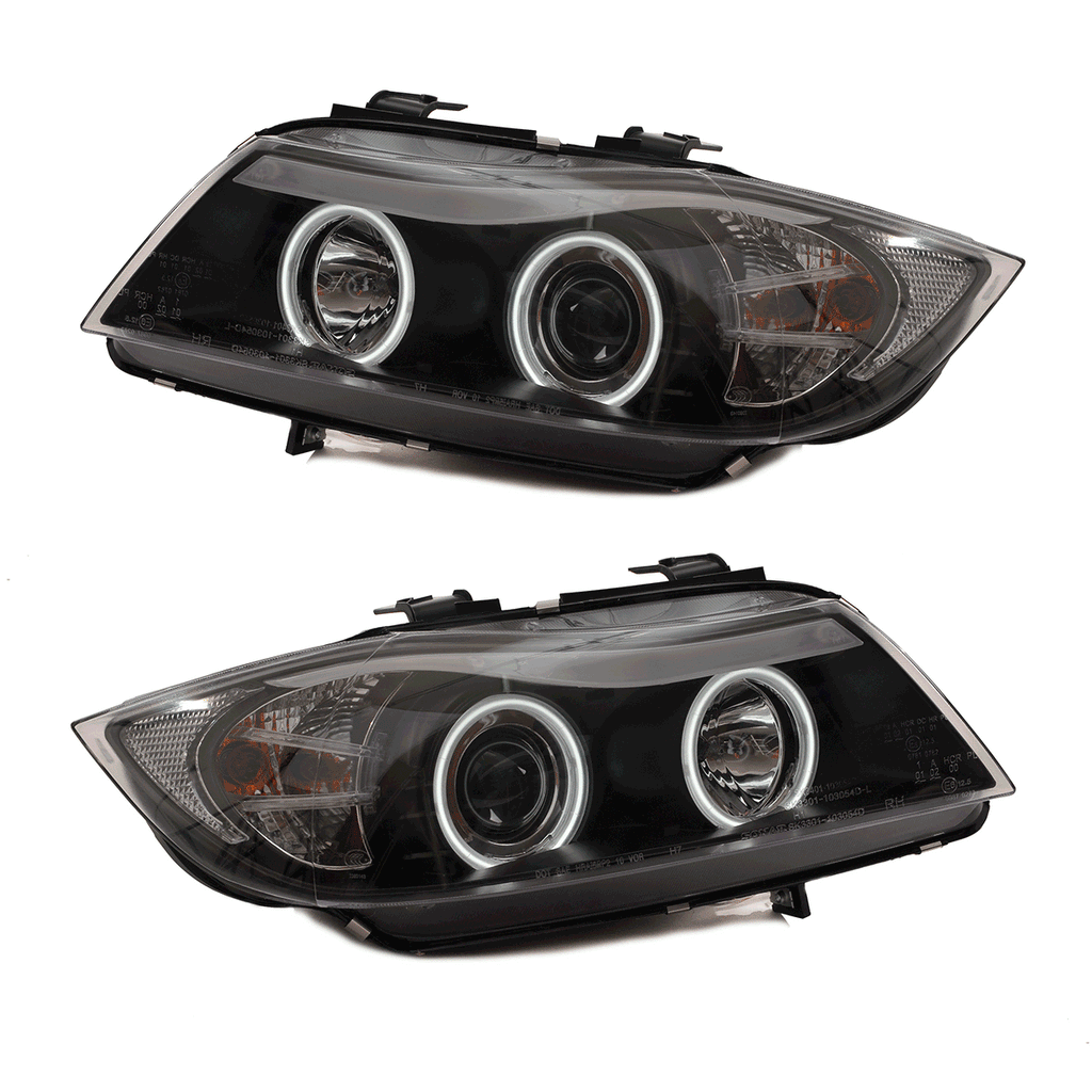 Zeer strakke set koplampen met CCFL angel eyes en zwarte inleg. De koplampen zijn plug & play op uw BMW 3 Serie E90 / E91 uit het bouwjaar 2005-2008. De set is enkel geschikt voor modellen met H7 halogeen dimlicht af fabriek.