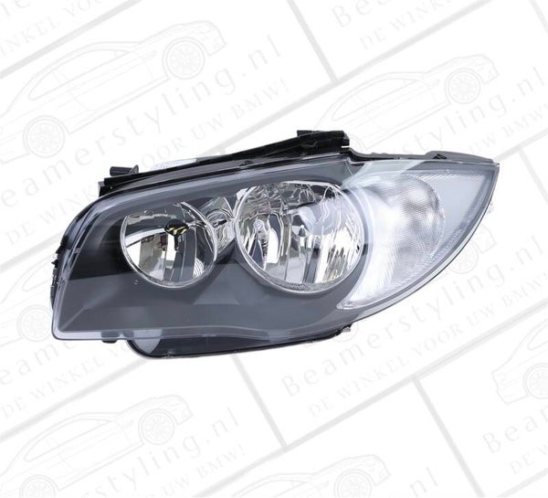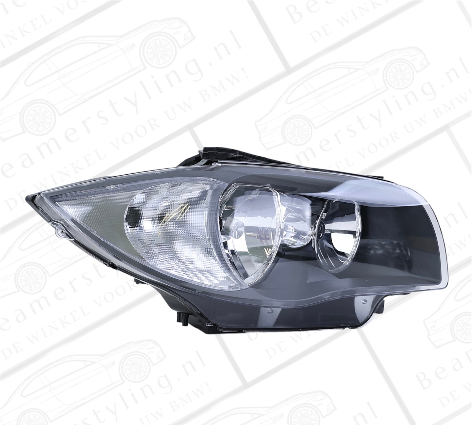 Beamerstyling.nl actie artikel! Koplamp Links of Rechts uitgevoerd met zwarte inleg. Geschikt voor modellen met H7 / H7 koplampen. De koplamp is toepasbaar op de BMW 1 Serie E81 / E87 en de E82 / E88 vanaf het bouwjaar 2004.