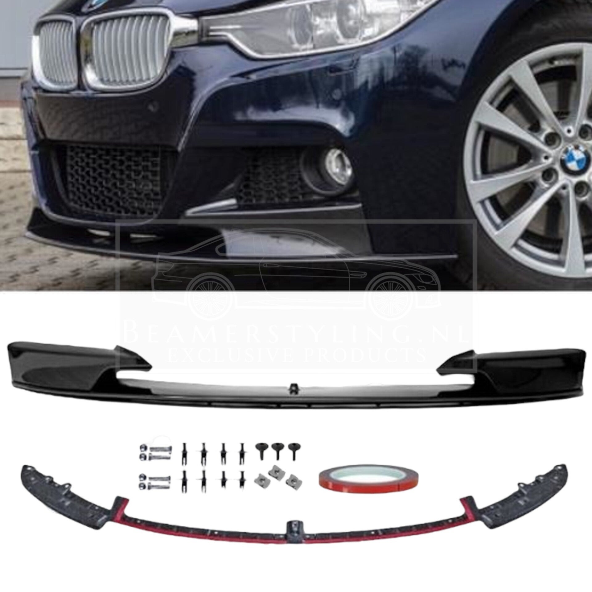 BMW F30 / F31 - Front lip M-Performance look - Carbon Glans | Gecertificeerd OEM Kwaliteit
