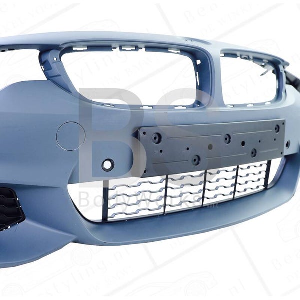 Een M pakket look voorbumper uitgevoerd met voorbereidingen voor parkeersensoren & koplamp sproeiers. De voorbumper is passend de BMW 4 Serie F32 Coupé, F33 Cabrio & F36 Gran Coupé vanaf het bouwjaar 2013. Complete voorbumper inclusief bumper versteviging. De bumper is getest op kwaliteit, pasvorm & afwerking en beschikt over een certificaat.
