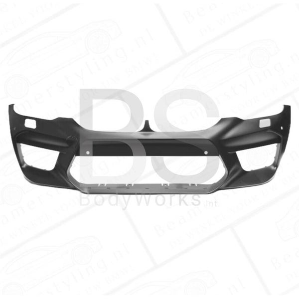 Een hoogwaardige M5 look voorbumper met front lip van het merk BS Bodyworks Int. uitgevoerd met voorbereidingen voor parkeersensoren (6x) & koplamp sproeiers. De voorbumper is passend voor de BMW 5 Serie G30 Sedan & G31 Touring uit de bouwjaren 2017-05/2020 (pre-facelift). Complete voorbumper inclusief alle grillen en toebehoren. De bumper is getest op kwaliteit, pasvorm & afwerking en beschikt over een certificaat.